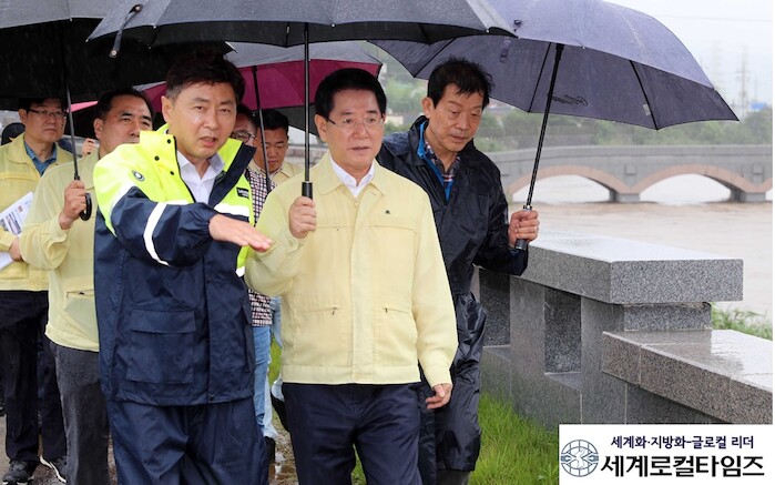 [세계로컬타임즈 김명진 기자] 김영록 전남도지사가 18일 새벽 내린 집중호우로 범람이 우려되는 보성 벌교천 현장을 살피고 하천의 범람이나 둑 붕괴와 같은 상황에 대비를 철저히 할 것을 강조했다.