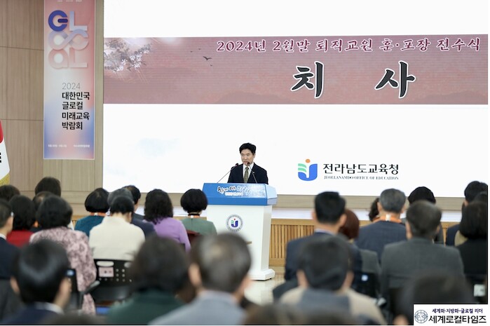 [세계로컬타임즈 김명진 기자] 전남교육청이 26일 청사 대회의실에서 2024년 2월말 퇴직교원 훈·포장 전수식을 개최했다.