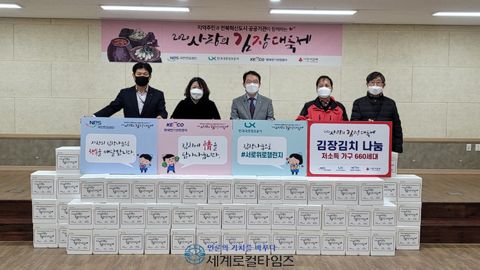 [세계로컬타임즈 조주연 기자] 전북혁신도시 내 공공기관들이 독거노인 등 취약계층 지원을 위한 ‘사랑의 김장 나눔’ 전달식을 가졌다.