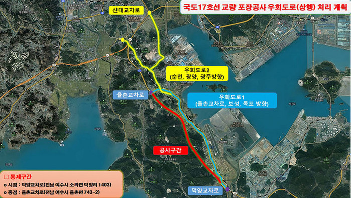 | ▲ 여수~순천간 국도17호선 교통통제 구간 및 우회도로 (사진= 여수시 제공) |
