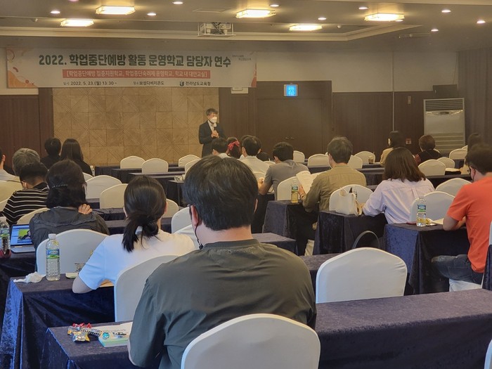 [세계로컬타임즈 김명진 기자] 전라남도교육청이 23일 보성다비치콘도 제암홀에서 2022년도 학업중단예방 집중지원학교와 대안교실, 숙려제 운영학교 담당자 94명을 대상으로 연수를 실시했다.