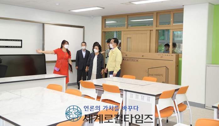 천안교육지원청 김홍기 시설과장에게서 학교 현황을 보고 받은 박 시장은 교사동과 다목적 강당, 예·체능실, 돌봄 교실 등을 꼼꼼히 둘러봤다.