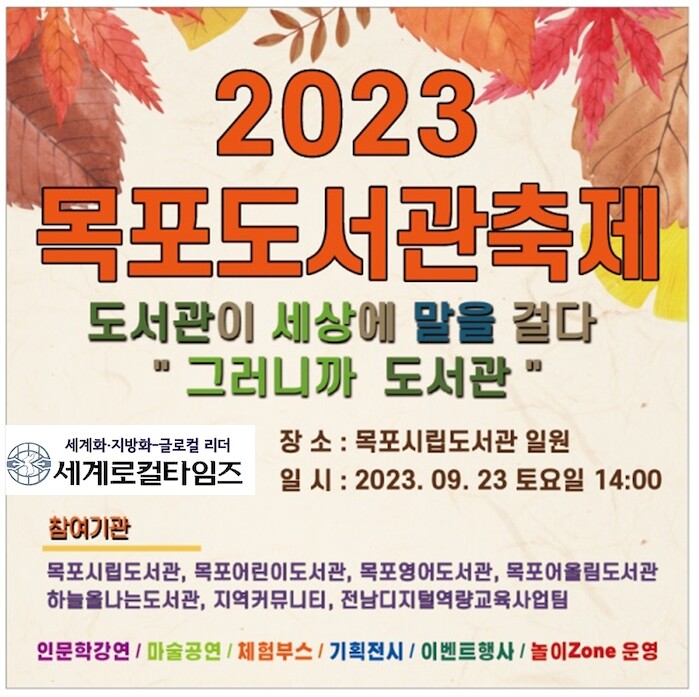 [세계로컬타임즈 김명진 기자] 목포시립도서관이 오는 23일 '도서관이 세상에 말을 걸다-그러니까 도서관’이라는 주제로 2023 목포도서관 축제를 개최한다.