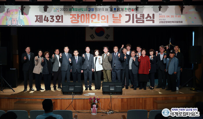 고창군에 따르면 이날 500여 명이 참석한 가운데 ‘차별은 없이, 기회는 같이, 행복은 높이’라는 주제로 식전공연과 장애인 인권헌장 낭독, 유공자 표창 수여가 진행됐다.