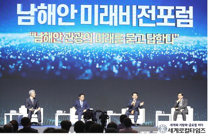 [세계로컬타임즈 김명진 기자] 김영록 전남도지사가 4일, 경남 창원컨벤션센터에서 열린 남해안 미래비전 포럼에서 전남을 중심으로 부산, 경남과 함께하는 ‘세계 속의 남해안 관광벨트 성공 비전’을 제시했다.