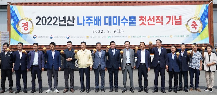 [세계로컬타임즈 강석운 기자] 명품 과일 ‘나주 배’가 올해 첫 미국 수출 길에 올랐다. 전국 최대 배 주산지인 나주시는 9일 나주배원예농업협동조합과 함께 미국으로 수출하는 조생종 배 상차 행사를 개최했다고 밝혔다.