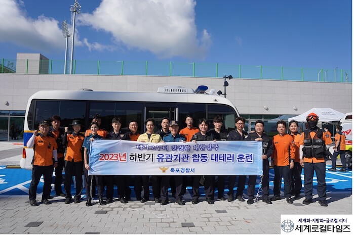 [세계로컬타임즈 김명진 기자] 목포경찰서는 18일 목포종합경기장에서 목포경찰서, 목포소방서, 목포시청, 군대대 등 7개 기관 172명이 참여한 ‘강력범죄 대응 합동 종합 훈련’을 실시했다.