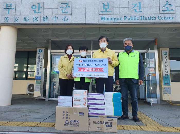 [세계로컬타임즈 박종현 기자] 무안군사회복지협의회는 지난 15일 무안군 보건소에 500만원 상당의 자가진단키트 800여개를 전달했다.