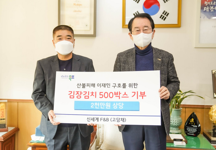 목포시에 기부된 김치는 배추김치 10kg 5백박스(2천만원 상당)로 강원도 삼척시와 경북 울진군의 산불피해 이재민대피소에 전달된다.
