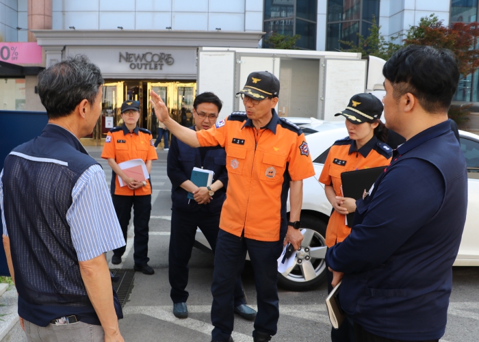 특히 건물 6층에 다중이용시설인 음식점, 키즈카페 등이 입점해 있으며 평일 기준 하루 1,500명 이상의 시민이 이용하고 있어 유사시 방문객 안전을 위한 대피 유도팀의 평소 훈련을 강조했고 소방설비 유지·점검, 방재요원의 야간대응 능력 등에 대해 안전지도를 실시했다.