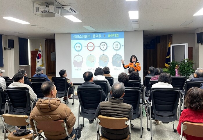 이번 교육은 도울인복지협회(시니어 일자리 사업)참여자를 대상으로 진행됐으며 김희옥 소방안전강사는 실제 사례를 바탕으로 한 이론과 체험형 실습을 병행해 교육 효과를 높였으며 교육생들 또한 심폐소생술의 중요성에 공감하며 교육에 적극 참여했다.