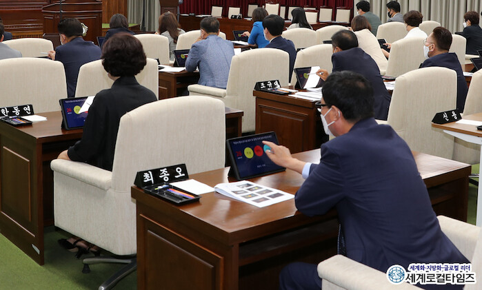 [세계로컬타임즈 조주연 기자] 전북 익산시의회가 본회의장에 전자투표시스템을 구축했다.