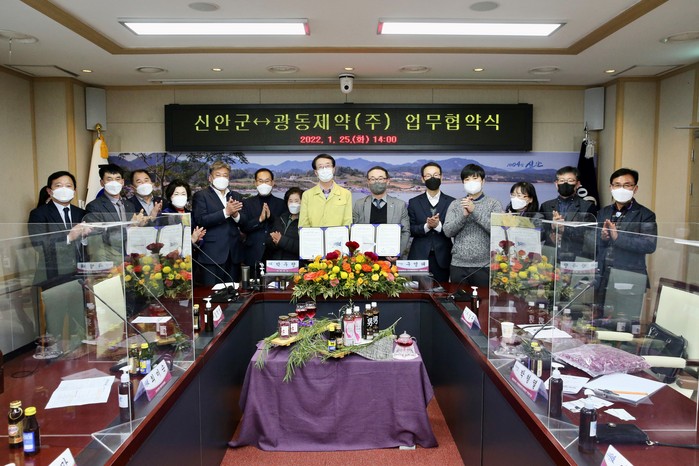 [세계로컬타임즈 조문배 기자] 신안군(군수 박우량)이 25일 광동제약(주)과 손잡고 맨드라미 음료 개발을 위한 업무 협약(MOU)을 체결했다고 밝혔다.