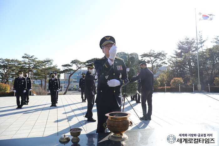 [세계로컬타임즈 김명진 기자] 김종욱 서해지방해양경찰청장이 2일 목포시 부흥산 현충탑에서 참배를 하며 2023년 한 해를 시작했다.