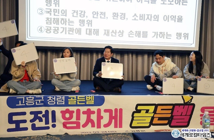 고흥군은 공무원노조와 함께 지난 23일부터 25일까지 제주도에서 ‘2023년 상반기 노사 상생발전 워크숍’을 가졌는데 이 행사에서 노조 대의원 등 50명이 참여한 가운데 ‘청렴 골든벨 대회’를 진행했다.