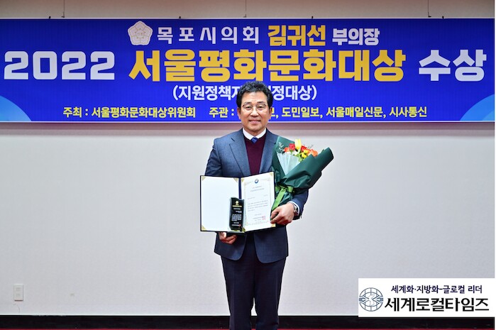 [세계로컬타임즈 김명진 기자] 김귀선 목포시의회 부의장(용당1, 용당2, 연동, 삼학동)이 2022년 서울평화문화대상 시상식에서 ‘지원정책자치의정대상’을 수상했다.