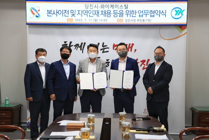 와이케이스틸(주)는 11일 당진시장 접견실에서 ▲당진시로의 본사 이전 ▲지역인재 고용 할당 ▲지역물산 사용 등에 적극 협력키로 약속했다.