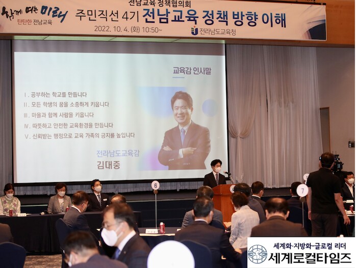 [세계로컬타임즈 김명진 기자] 전라남도교육청(교육감 김대중)은 4일 영암현대호텔에서 민선4기 첫 전남교육 정책협의회를 개최했다.