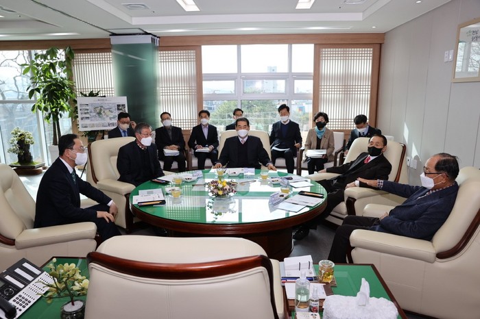 명현관 해남군수는 국립 농식품기후변화대응센터 유치, 유럽마을 테마파크 조성, 탄소중립 에듀센터 등 최근 해남에 유치가 결정된 대규모 사업들의 추진과정에 대해 설명하는 한편 내년 군정 중점 추진 전략에 대한 의견을 교환했다.