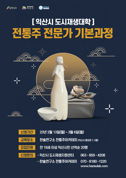함열지역 도시재생사업에 관심있는 만 19세 이상 시민을 대상으로 전통주 전문가 기본과정 수강생을 3월 5일까지 선착순 모집한다.