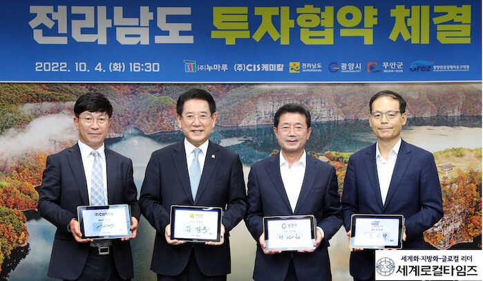 [세계로컬타임즈 김명진 기자] 전라남도는 4일 이차전지 소재 분야의 ㈜씨아이에스케미칼과 풀빌라 등 관광사업에 투자하는 ㈜누마루 등 2개 기업과 1천900억 원 규모의 투자협약을 했다.