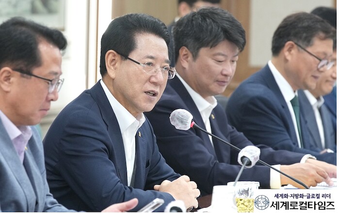 [세계로컬타임즈 김명진 기자] 김영록 전남도지사가 일본 원전 오염수 방류에 대응해 ‘양식장 수산물 방사능 안전필증’ 전 품목 시행, 정부의 ‘재정 다이어트’에 맞춤형 국비 확보활동 강화, 전국체전 예술문화축제로 개최 등을 강조했다.