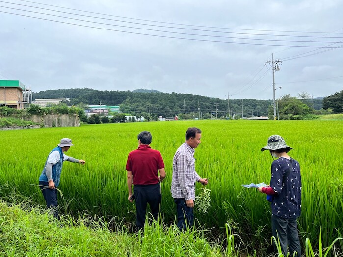 | ▲ 백옥쌀 GAP생산단지 재배지 심사를 하고 있다. (사진=용인시) |