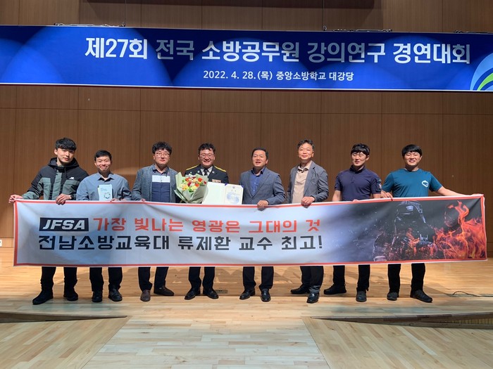 올해는 전국 소방학교 교수 11명이 참가했으며 전남 대표로 출전한 류제환 소방위는 ‘불길을 잡는 세가지 전술’이라는 주제로 차단, 냉각, 배연 전술방법을 통한 연구 발표로 우수한 성과를 인정받았다.