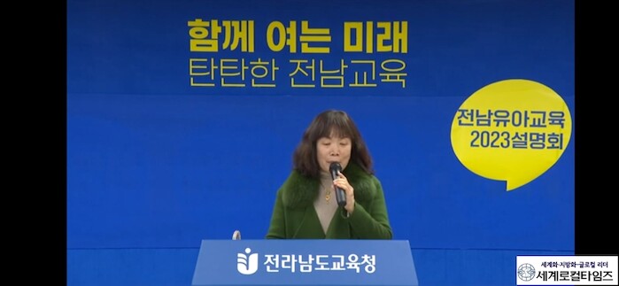 [세계로컬타임즈 김명진 기자] 전라남도교육청이 19일 도내 공ㆍ사립유치원 교직원, 교육지원청 유아담당 장학사 등 600여 명을 대상으로 ‘전남유아교육 2023’ 온라인 설명회를 갖고 올해 유아교육 기본계획을 발표했다.