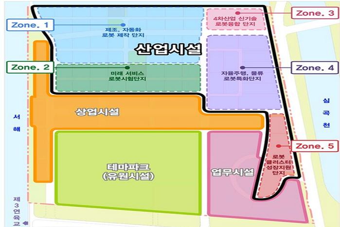 인천로봇랜드 개발계획은 로봇산업시설, 상업 및 업무시설, 테마파크 용지 등이 상호 유기적인 배치계획을 포함하고 있다.