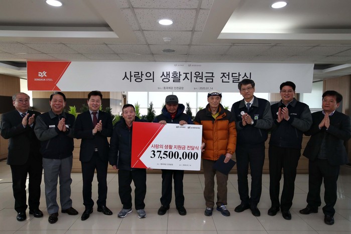 [세계로컬타임즈 최성우 기자] 동국제강은 인천공장 및 동국제강 그룹 송원문화재단이 설 명절을 앞두고 2020년 상반기 생활지원금 전달식을 가졌다.