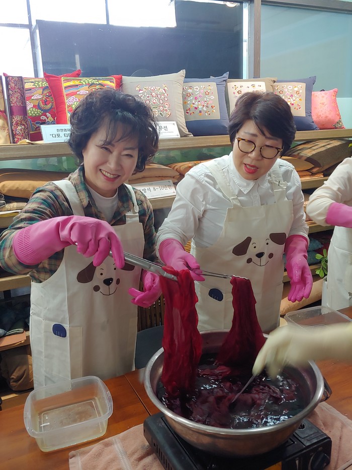 이날 구의원들은 사회적경제 활동 체험을 위해 천연염색의 대중화를 실천는 연수구 사회적기업 '자연과 창의성'을 방문해 이현경 대표와 함께 한약 재료를 이용한 실크 스카프 염색체험을 했다.