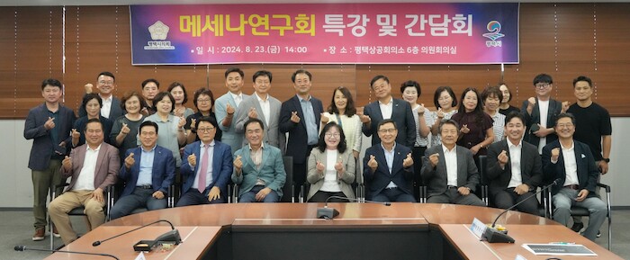 [세계로컬타임즈 온라인뉴스팀]평택시의회 ‘메세나 연구회’는 23일 평택상공회의소 의원회의실에서 특강 및 간담회를 개최했다.