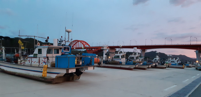 | ▲ 소형 어선들이 태풍 '솔릭'을 피해 신마항 부두 위로 정박해져 있다. |