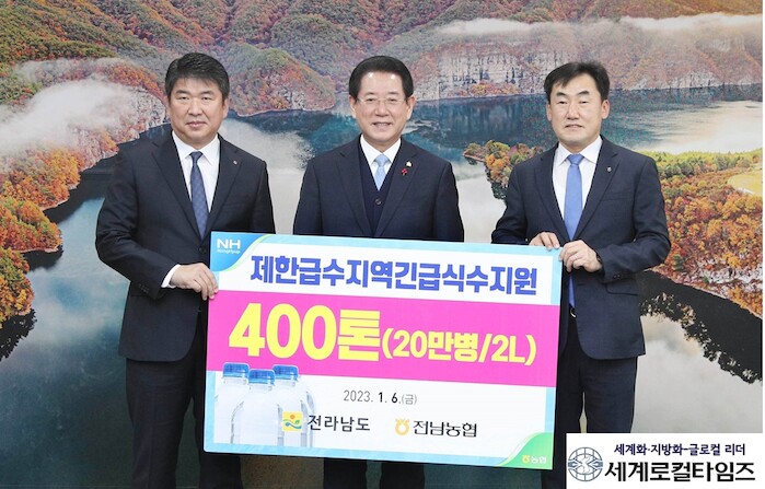 [세계로컬타임즈 최진기 기자] 최근 가뭄으로 전남 일부지역에서 식수부족이 이어지고 있는 가운데 농협중앙회가 전남도에 총 400톤의 생수를 지원한다.