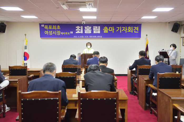 [세계로컬타임즈 김명진 기자] 목포 최초 여성 시장후보인 최홍림 의원이 22일 목포시장 출마 기자회견을 가졌다.