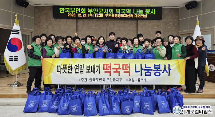 [세계로컬타임즈 조주연 기자] 한국부인회 부안군지회(이하 부인회)가 떡국 떡 나눔행사를 펼쳤다.