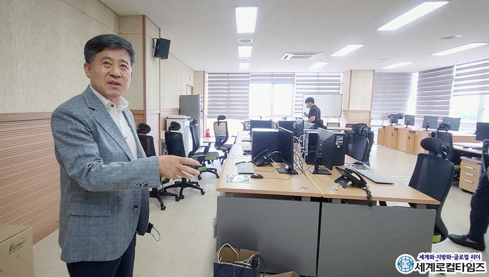 | ▲8일 오후, 정성주 김제시장 당선인이 김제시장직 인수위원회 사무실을 소개하고 있다. |
