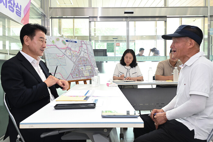 ▲ 김동근 시장이 8월 23일 가능동 주민센터에서 ‘현장시장실’을 열고 주민들과 소통하고 있다. [사진=의정부시] |