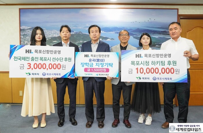 [세계로컬타임즈 김명진 기자] 목포신항만운영(주)이 전국체전 출전 선수단과 저소득 대학생을 위한 후원금과 장학금을 목포시에 지정기탁했다.