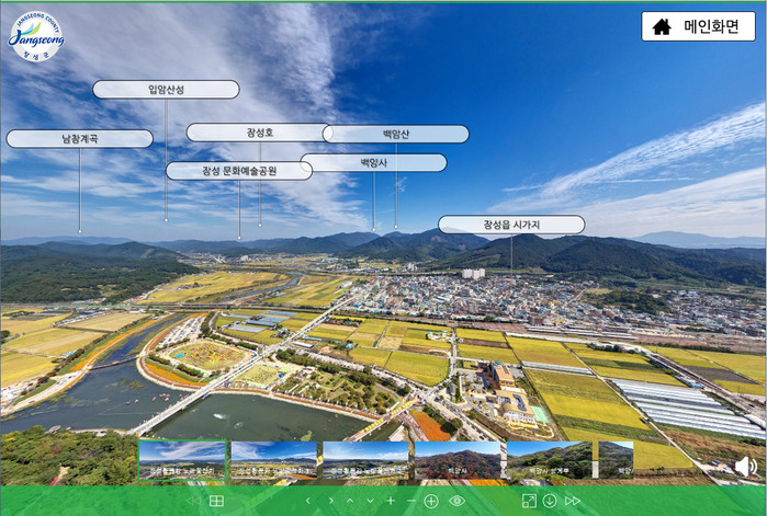 | ▲ 20일부터 공개되는 전남 장성군 관광지 항공 가상현실(VR). |