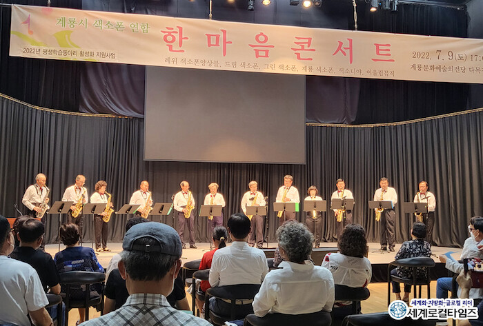 ▲2022년 우수 학습동아리 지원을 받은 ‘계룡시 색소폰 연합’ 한마음콘서트 공연 모습 ⓒ계룡시 |