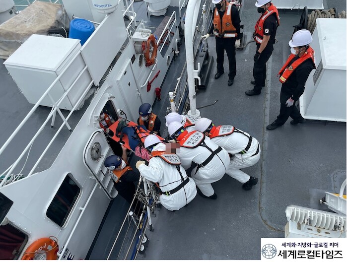 신고 접수 20분 만에 현장에 도착한 경비함정은 해당 선원의 건강상태를 확인하고 응급처치 후 육지로 긴급 이송했다.