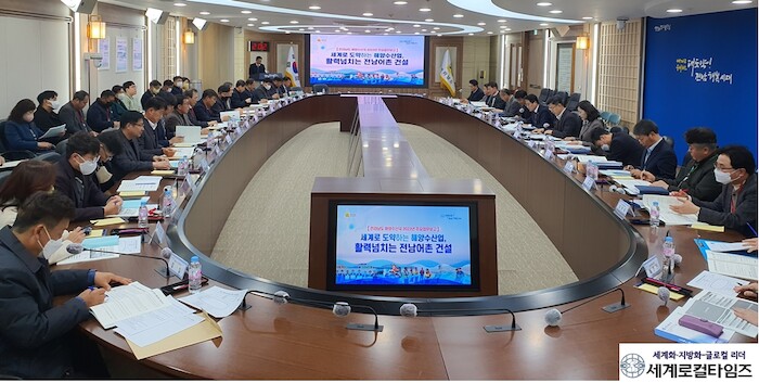 [세계로컬타임즈 김명진 기자] 전남도가 21일 도청 서재필실에서 ‘2023년 해양수산 관계관 회의’를 열어 고물가·고금리·고환율과 고유가 등으로 어려운 해양수산업 위기 극복을 위해 머리를 맞댔다.