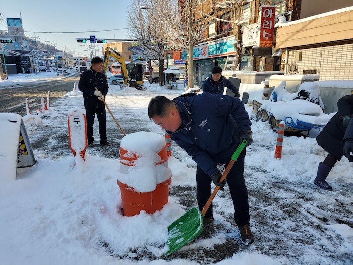 김산 군수를 비롯한 실단과소 직원 800여명은 주요 도로와 골목길 등 곳곳에서 제설작업을 실시해 군민 안전 확보에 최선을 다했다.