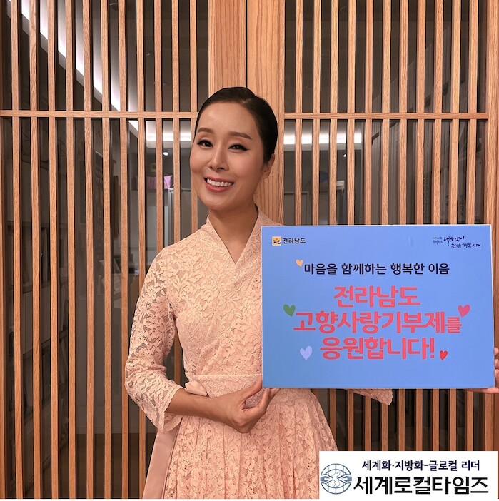 [세계로컬타임즈 김명진 기자] 전라남도는 목포 출신 국악인 박애리 씨가 고향사랑기부제 응원 릴레이에 참여해 고향 발전과 고향사랑기부제 성공 안착을 응원했다고 밝혔다.