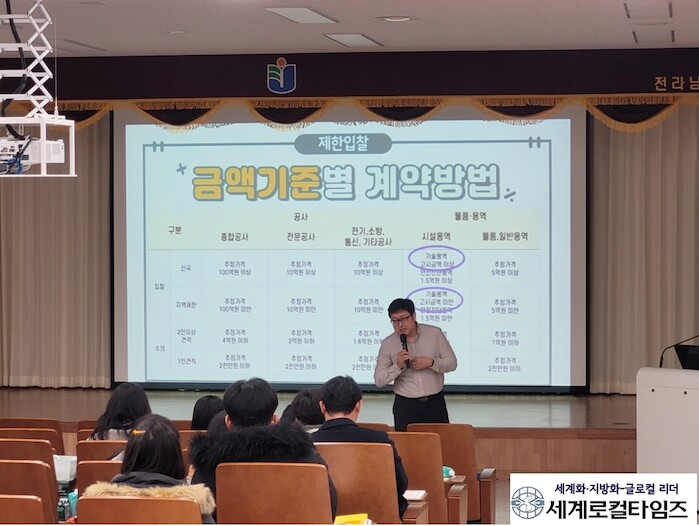 [세계로컬타임즈 김명진 기자] 전라남도교육청이 지난 5일 교육지원청과 직속기관 신규 계약업무 담당자(40명)을 대상으로 계약 입문과정을 운영했다.