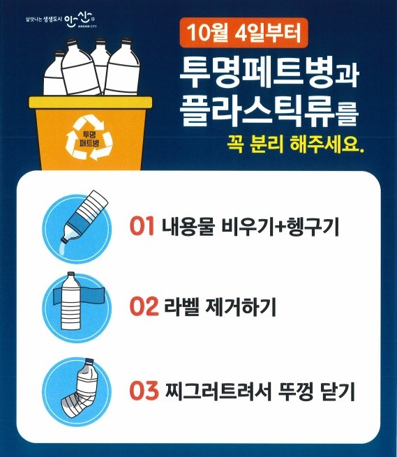 | ▲ 투명페트병 분리배출 시행 안내문.(사진=안산시) |