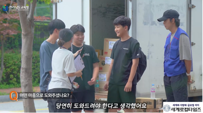 도움을 준 순천의 한 중학교 학생들은 “더운 날씨에 저희를 위해 열심히 일하시는데 당연히 도와드려야 한다고 생각했다.”며 “서로를 보듬어주는 조금 더 따뜻한 세상이 됐으면 좋겠다.”고 밝혔다.