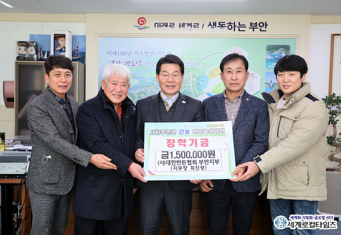 [세계로컬타임즈 조주연 기자] (사)대한한돈협회 부안지부가 19일 부안군 근농인재육성재단을 방문해 지역 인재육성을 위한 장학금 150만원을 기탁했다.
